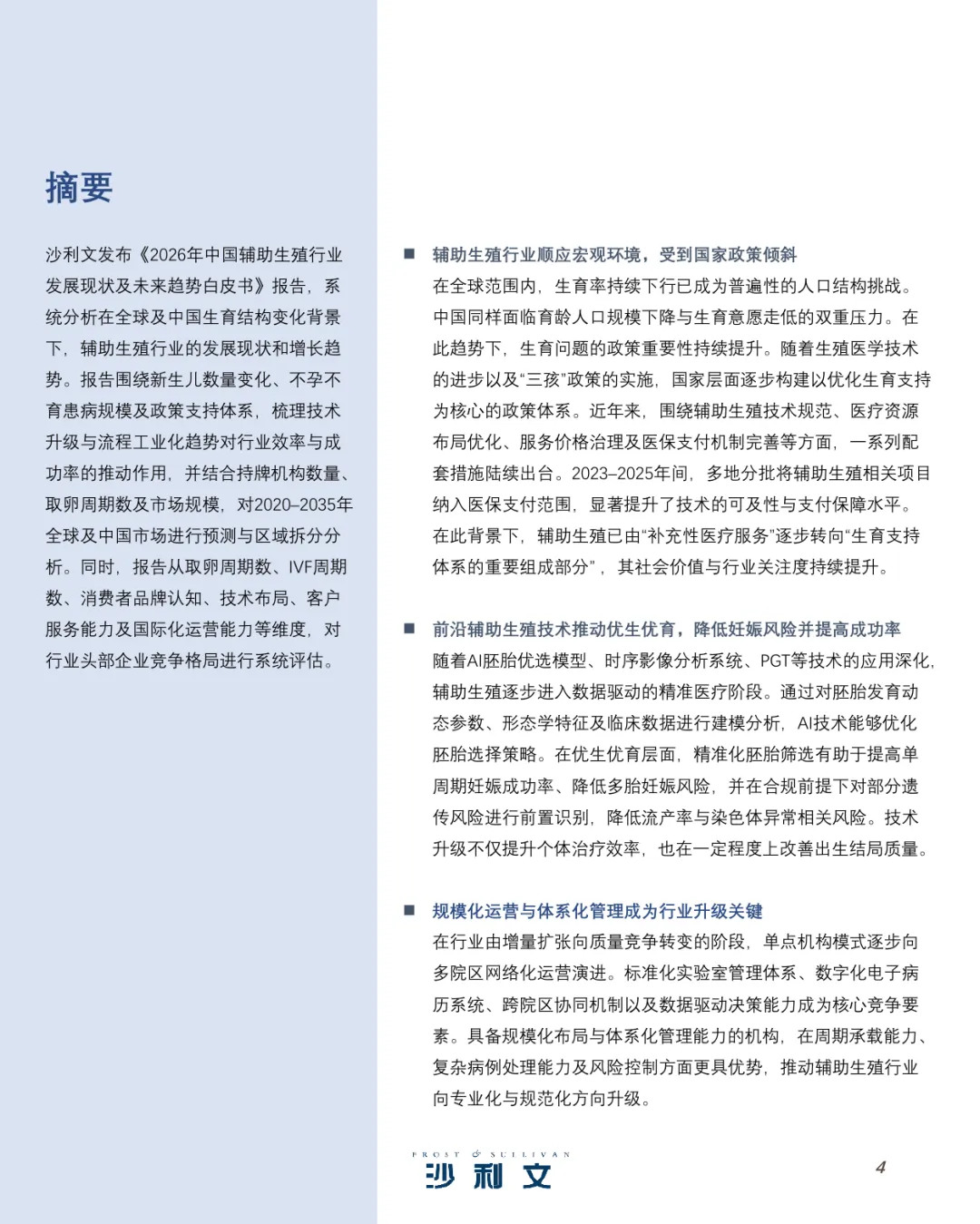 人口负增长、生育年龄推迟、不孕率攀升……沙利文这份行业白皮书,用冰冷的数据描绘了一个充满温度的产业。辅助生殖不再是羞于启齿的秘密,而是一项被国家政策鼓励、被医保覆盖、被资本市场看好的战略性新兴产业。