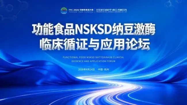 4月24日,FFC2026功能性食品大会在杭州正式发布《2026中国功能性食品行业高质量发展报告》(白皮书)。中国引进纳豆激酶第一人、纳豆激酶应用专利发明人、心血管健康管理与纳豆激酶应用研究中心主任、日生研生命科学(浙江)有限公司董事长袁胜元担任编委之一。该白皮书聚焦功能性食品产业科学化转型,而NSKSD纳豆激酶凭借长达十六年的人体临床研究与完整的循证证据链,被业内视为第三代功能食品的实践范本。