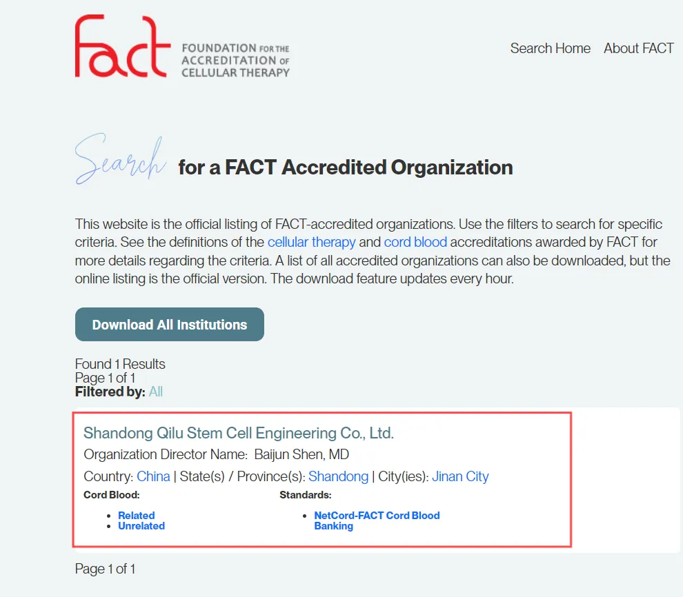 白皮书中提到:"资质是干细胞机构权威性的重要体现,政府的'背书'也是对机构技术实力和合规性有力的支持和佐证。"2025年,齐鲁干细胞获得FACT国际认证,成为中国内地首家也是唯一一家通过该认证标准的细胞机构。FACT认证是全球细胞治疗领域内公认的权威认证之一,其标准已获得美国FDA等机构认可与采信,是全球细胞治疗领域医保支付的核心参考标准。获得FACT认证,意味着山东省脐血库、齐鲁干细胞的质量管理体系达到了国际最严格标准。
