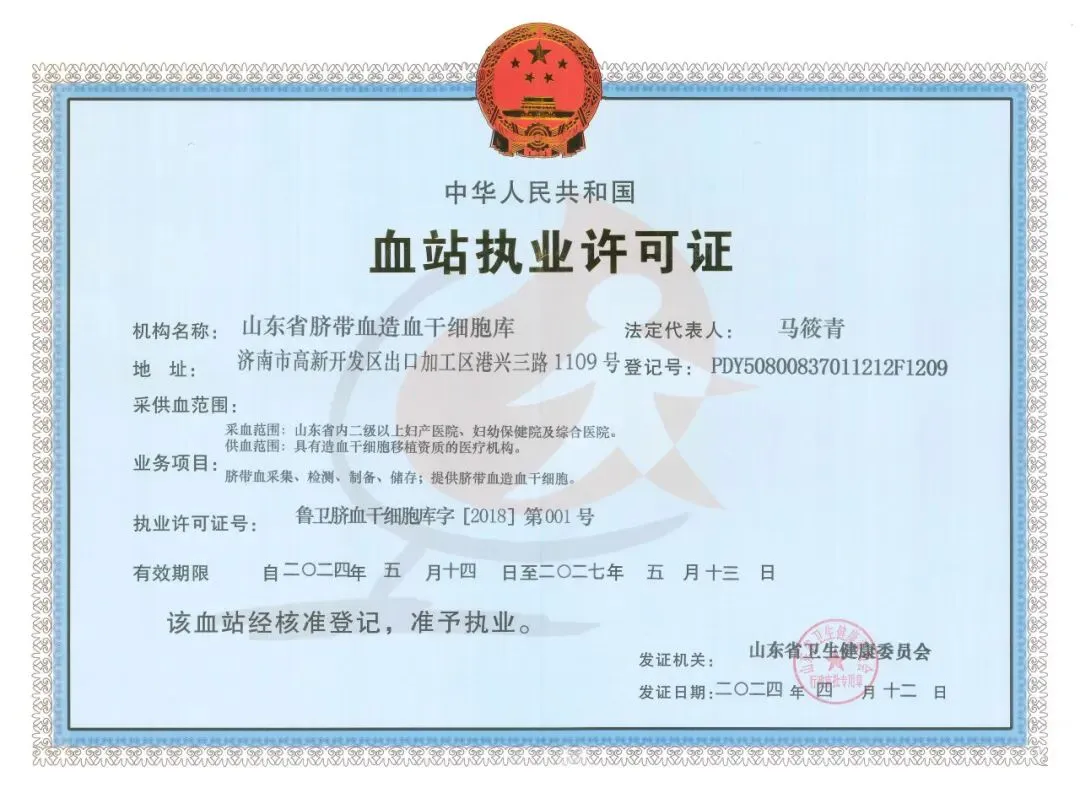 除此之外,齐鲁干细胞同时具备国家卫健委批准的脐带血库牌照和山东省卫健委批复的细胞组织库资质,形成了血站执业许可、中检院认证、FACT认证三重权威资质的叠加优势。