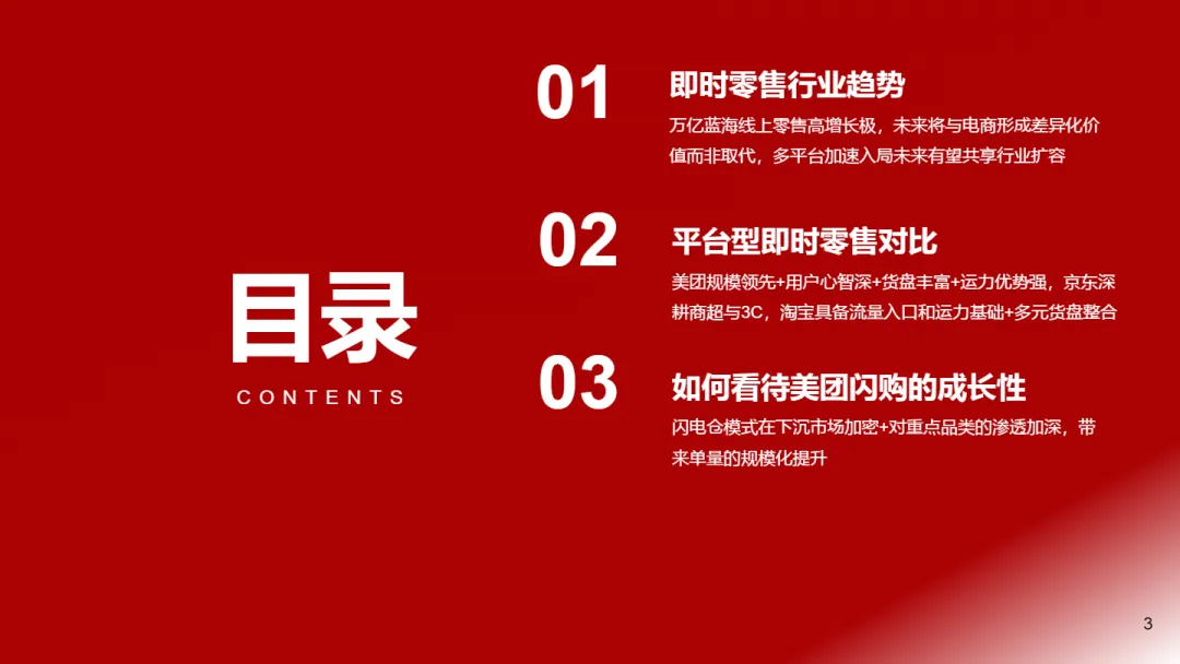 • 平台竞争格局:美团闪购领跑,京东秒送强攻商超3C,淘宝闪购靠流量整合突围:美团凭借闪电仓+骑手网络占据先发优势,2024年GMV达2620亿元;京东整合达达与京东到家推“秒送”,主打商超+3C;淘宝闪购依托主站流量与饿了么运力,618期间日单量破6000万单。