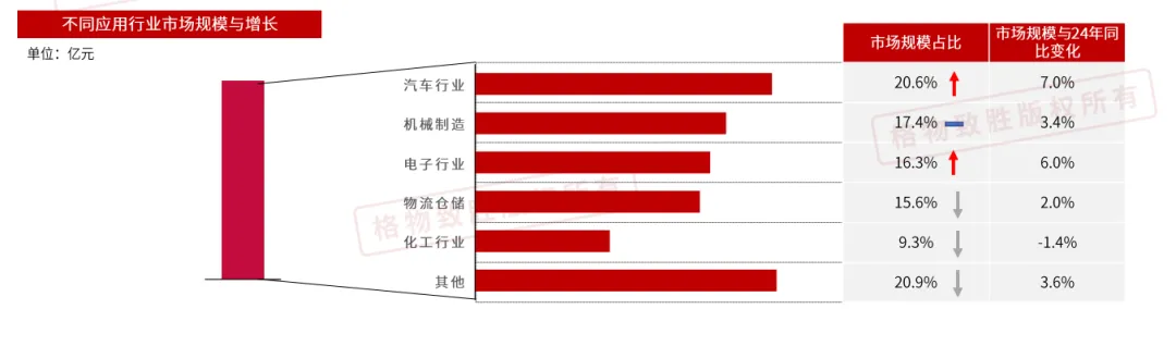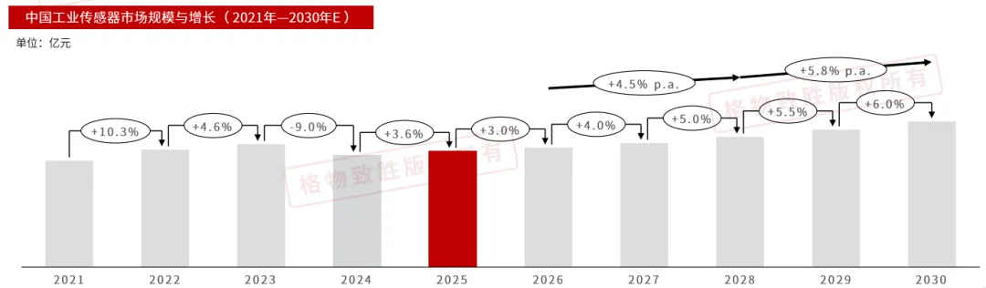 因部分下游行业需求低迷,导致相关的纯碱、PVC 、涂料等多种化工品需求收缩,叠加“反内卷”政策落地及产能扩张阶段收尾,化工行业的工业传感器规模则有同比1.4% 的下降,目前占总规模的9.3% 。