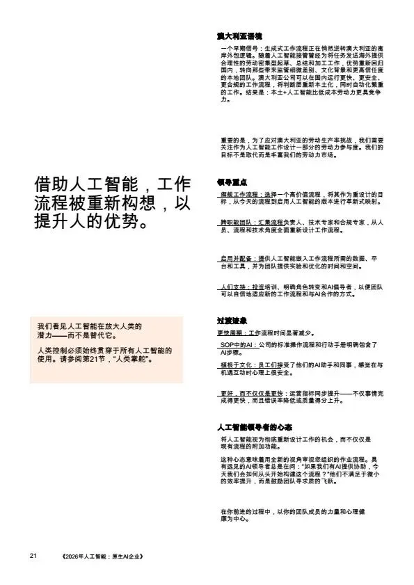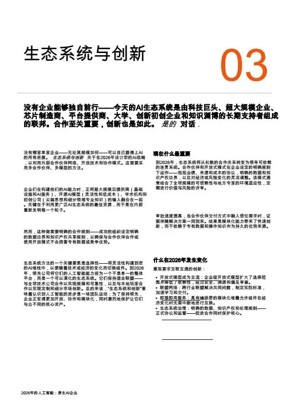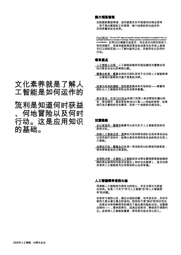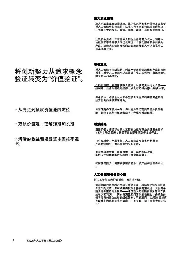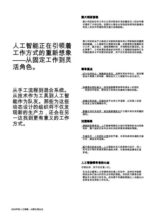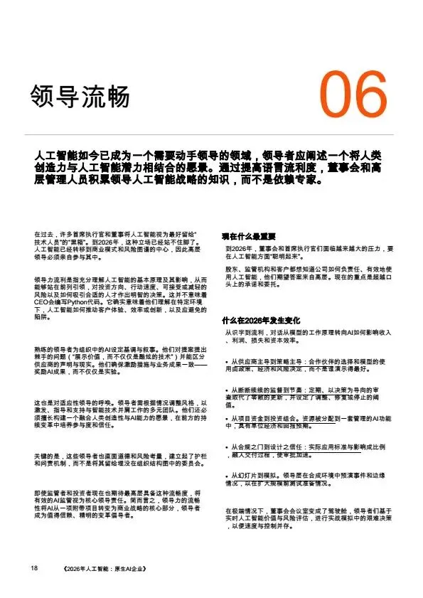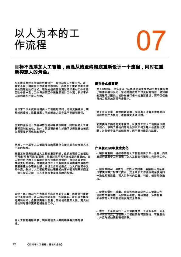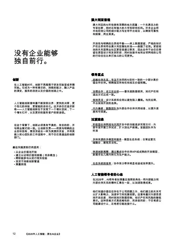 摘要:2026年,AI规模化应用成为企业转型核心,大量企业陷入“试点炼狱”,零散的AI试点无法转化为规模化价值。本文系统梳理企业架构设计逻辑:基于PwC全球案例,提出AI原生企业的转型路径,将AI从外挂工具重构为企业内置的核心能力,通过零基流程重构、统一治理框架、人机协同架构,解决AI规模化落地的痛点,为企业管理者、AI行业从业者提供转型参考。
