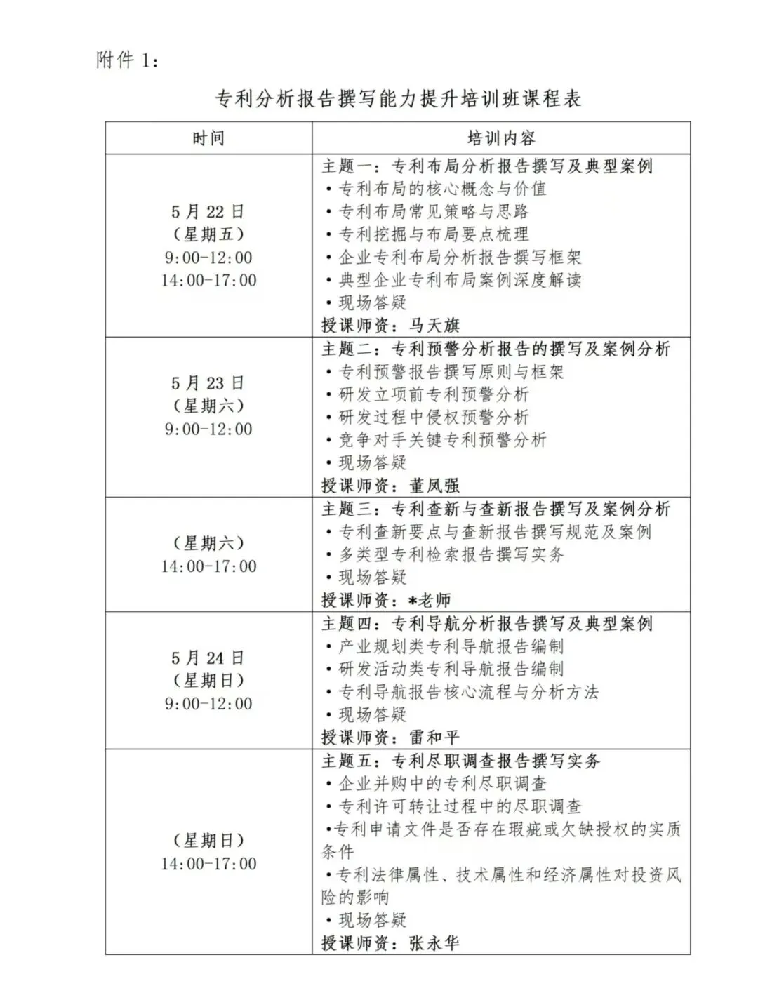企业可通过专利情报分析,了解本技术领域中,哪些技术专利申请较集中,哪些技术的专利申请尚有空白点;留有空白点的技术是否有经济价值,对其进行技术研发的可行性及是否符合该行业的发展动向等问题,从而帮助企业做出最终研发决定,避免无效投入和开发的盲目性。专利分析报告是专利分析的最终成果之一,报告撰写要避免面面俱到确没有深入挖掘,专利分析报告的形成需要经过多次推敲和论证,最后形成一份能充分展示课题研究成果并得到认可的专利分析报告。为此,本平台将于2026年5月22日至24日在北京市举办“专利分析报告撰写能力提升培训班”。