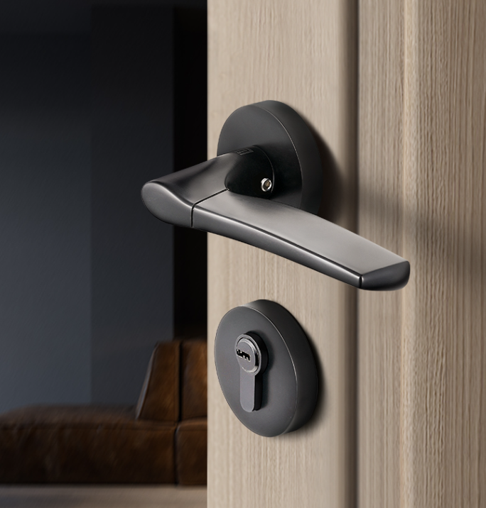 9、卡贝门锁室内卧室房门木门门锁黑色太空铝通用型面板锁门把手机械锁