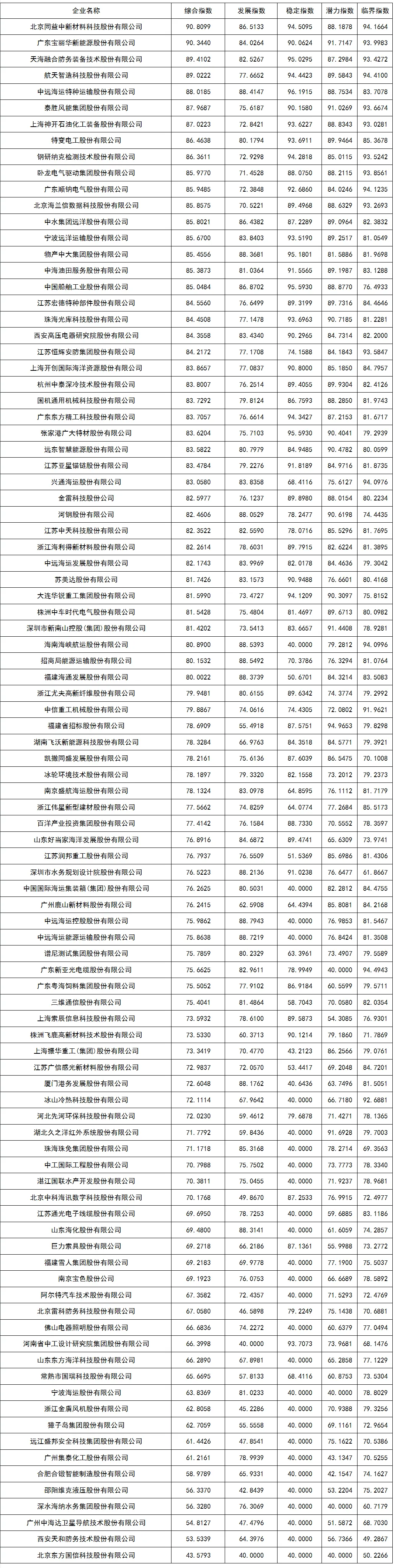 临界指数:在公司的发展能力、经营稳定性及增长潜力分析的基础上,引用公司的负债结构、现金充足程度及其他偿付能力等综合指标分析做出的公司违约可能性的临界判断。分数越高,公司的违约可能性越小。