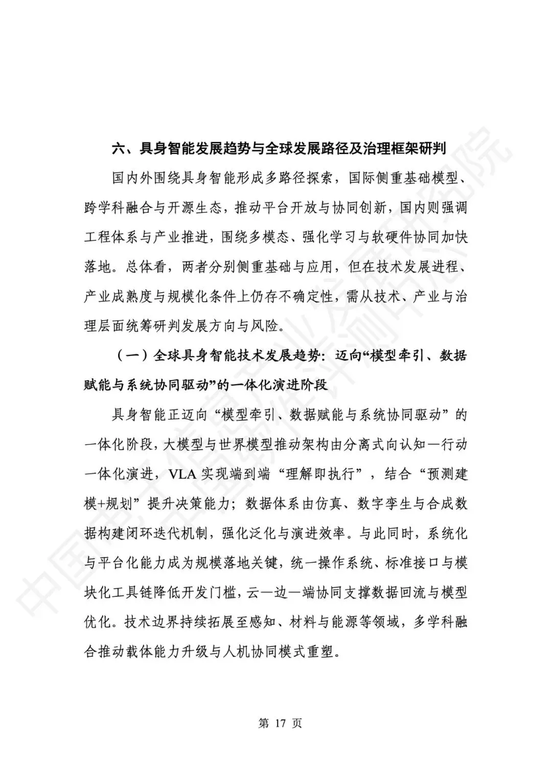 导读:具身智能正成为人工智能迈向现实物理世界的重要方向,处在由工程化探索迈向规模化应用的关键阶段,应坚持以智能技术系统性创新为驱动,以多元场景规模化应用为牵引,加快构建“技术—产业—治理”一体化的发展路径。