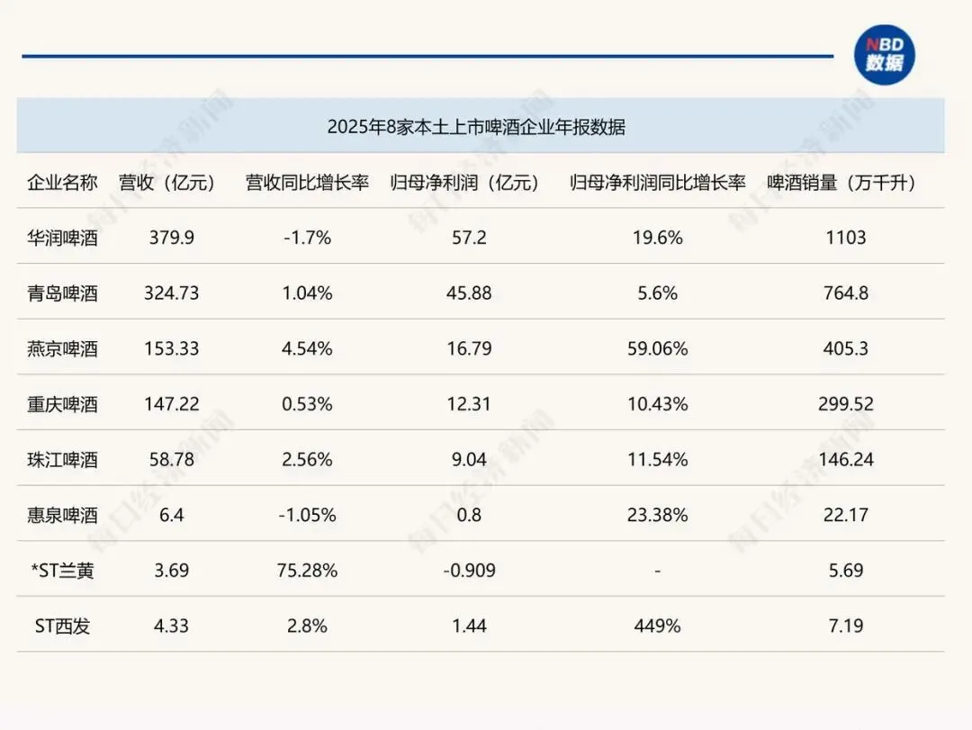 4月26日晚,ST西发披露2025年度财务报告,至此8家本土啤酒上市公司2025年报悉数落定。