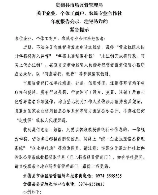 关于企业、个体工商户、农民专业合作社年度报告公示、注销防诈的紧急提示