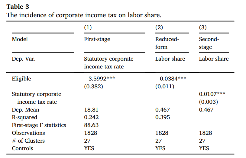 原文信息:Li, B., Liu, C., & Sun, S. T. (2021). Do corporate income tax cuts decrease labor share? Regression discontinuity evidence from China. Journal of Development Economics, 150, 102624.