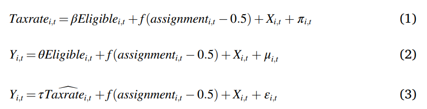 由于各种原因(资质不齐,已享受其他减税优惠,未盈利),在本文的样本中有19.2%的企业样本达到了OSO的减税标准但并未享受到减税优惠。因此本文实际上采用的是如下的模糊断点回归(Fuzzy RD)。