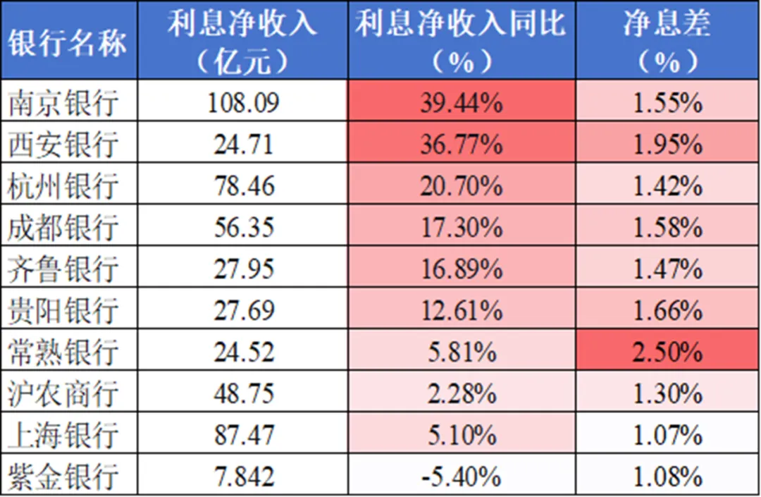 利息收入回暖的背后,是净息差企稳信号的逐步清晰。贵阳银行一季度净息差回升至1.66%;常熟银行维持2.50%的行业领先水平;成都银行、南京银行净息差亦稳定在1.5%以上。
