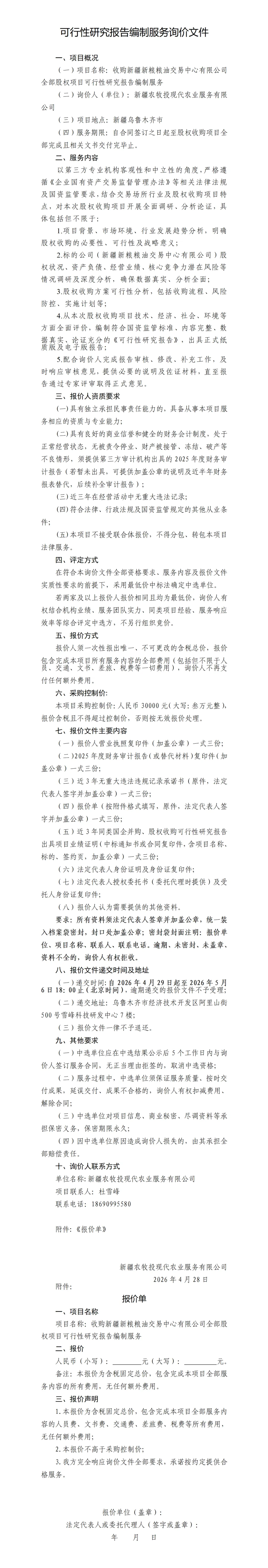 可行性研究报告编制服务询价公告