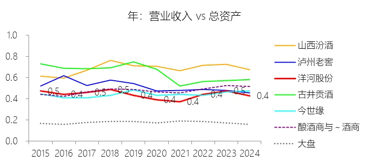 三、净资产收益率降至历史低点,资产利用效率弱于行业