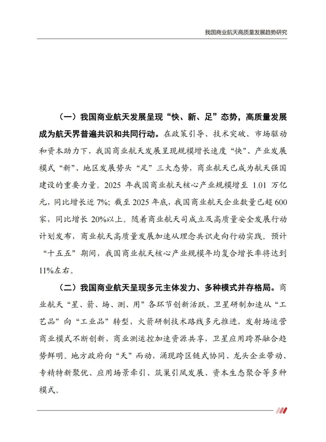 当前我国商业航天发展呈现快、新、足三大态势,已成为航天强国建设的重要力量,正从成长期迈向成熟期,“十五五” 期间将以五大创新为抓手,因地制宜推进高质量发展,加速形成航天新质生产力。