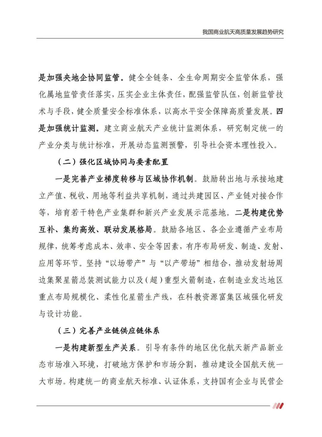 未来需加强顶层统筹与分类指导,强化区域协同与要素配置,完善产业链供应链,健全创新转化机制。未来 5 到 10 年,我国商业航天将进入产业化、市场化、国际化快车道,可复用火箭实现航班化发射,低轨互联网星座全面商用,天基信息服务融入日常生活,赋能千行百业,开启空天地海一体的智能经济时代。