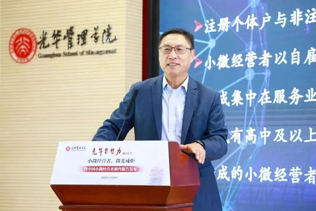 2026年4月28日,由北京大学光华管理学院、北京大学企业大数据研究中心、北京大学中国社会科学调查中心联合主办,网商银行、蚂蚁集团研究院协办的光华思想力研讨会暨中国小微经营者调查报告发布活动,在光华管理学院成功举办。本次研讨会以“小微经营者,微光成炬”为主题,汇聚学界权威、业界专家与行业实践者,深度剖析小微经营现状、研判发展趋势,并围绕小微理财、AI赋能、民营经济政策等关键议题展开研讨,为小微经济高质量发展贡献智慧。活动由北京大学中国社会科学调查中心研究部主任孔涛主持。