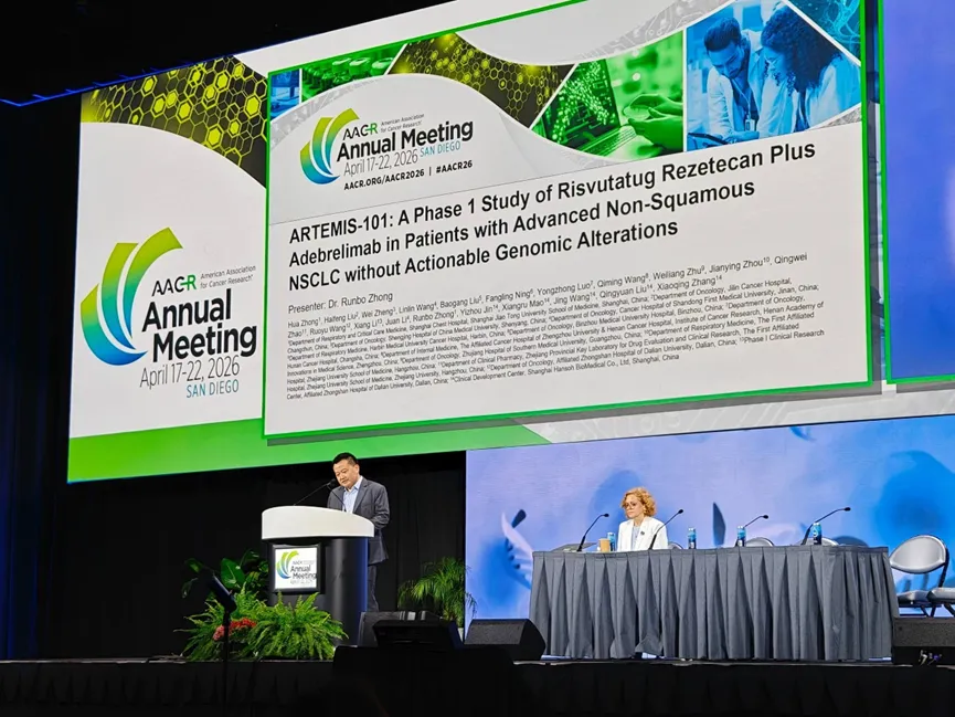 2026年4月19日,在于美国圣地亚哥举行的美国癌症研究协会(AACR)年会上,由我院呼吸与危重症医学科牵头开展的ARTEMIS-101 Ib期临床研究公布最新进展。该研究由呼吸与危重症医学科钟华主任牵头,钟润波主任在大会进行口头报告。