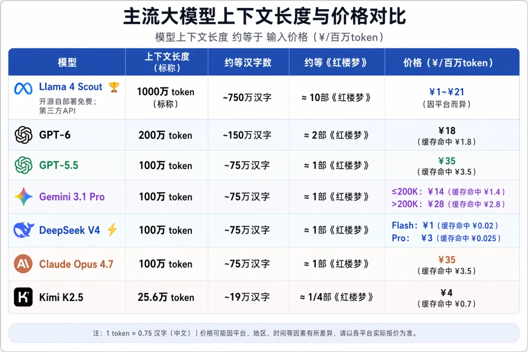 小白话有话说: 1、超长上下文选GPT-6(最稳)或DeepSeek V4(最便宜国产); 2、Llama 4 Scout的1000万token“虚标”,别被数字骗了。 |