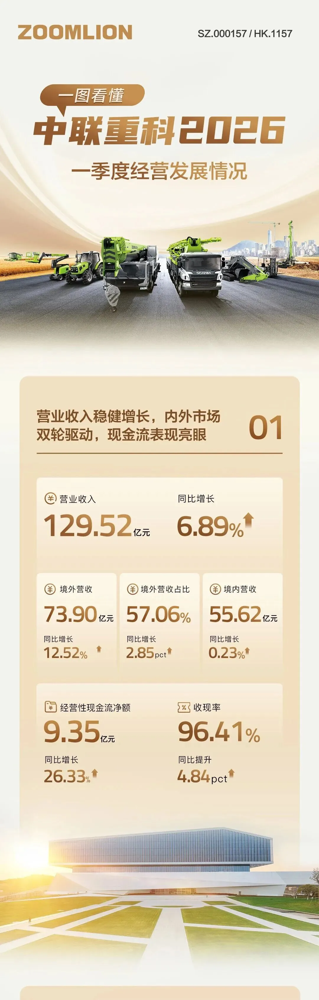 中联重科2026年一季度财报,清晰地展现了企业在行业复苏周期中的困境:营收端仅实现温和增长,利润端却大幅缩水,同时伴随经营现金流恶化、盈利质量下滑、运营效率降低等多重问题。
