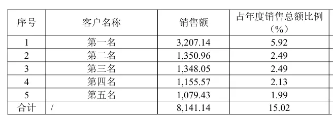 前五客户营收情况⭐️前五名客户销售额8141.14万元,占年度销售总额15.02%;