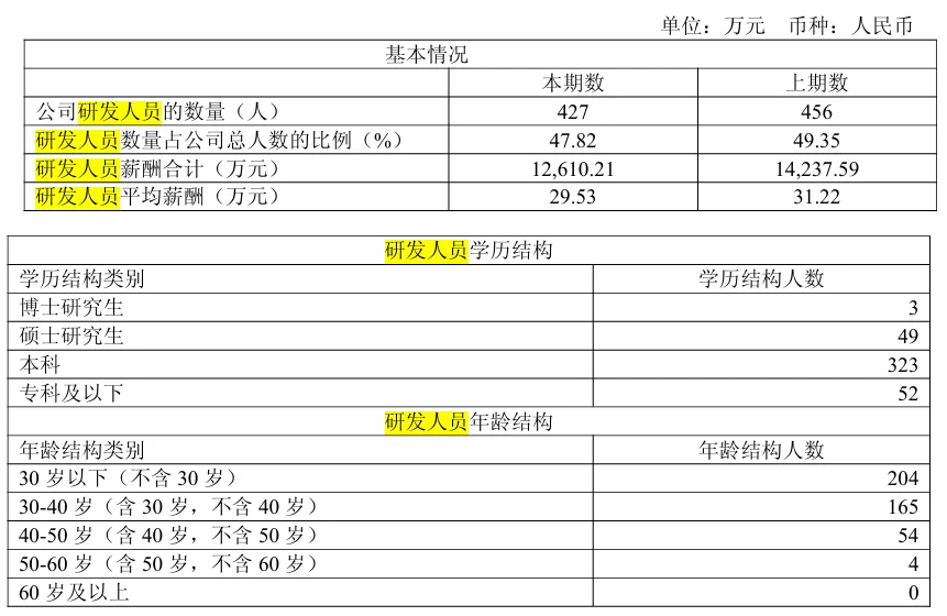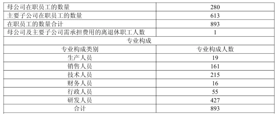 员工情况2025年在岗职工893人,2024年报在岗职工数为924人,按此计算人员缩编或者优化31人,其中研发人员缩编29人。其中研发人员为427人,较去年同期456人减少29人。