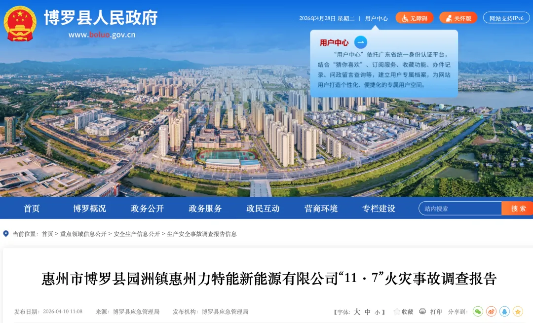 经调查认定,博罗县园洲镇惠州力特能新能源有限公司“11·7”火灾事故是一起因企业主体责任落实不到位、出租方对出租厂房管理混乱、企业员工安全防范意识薄弱,地方党委政府和主管行业部门监管不到位而导致的一般火灾责任事故。现将事故调查报告如下: