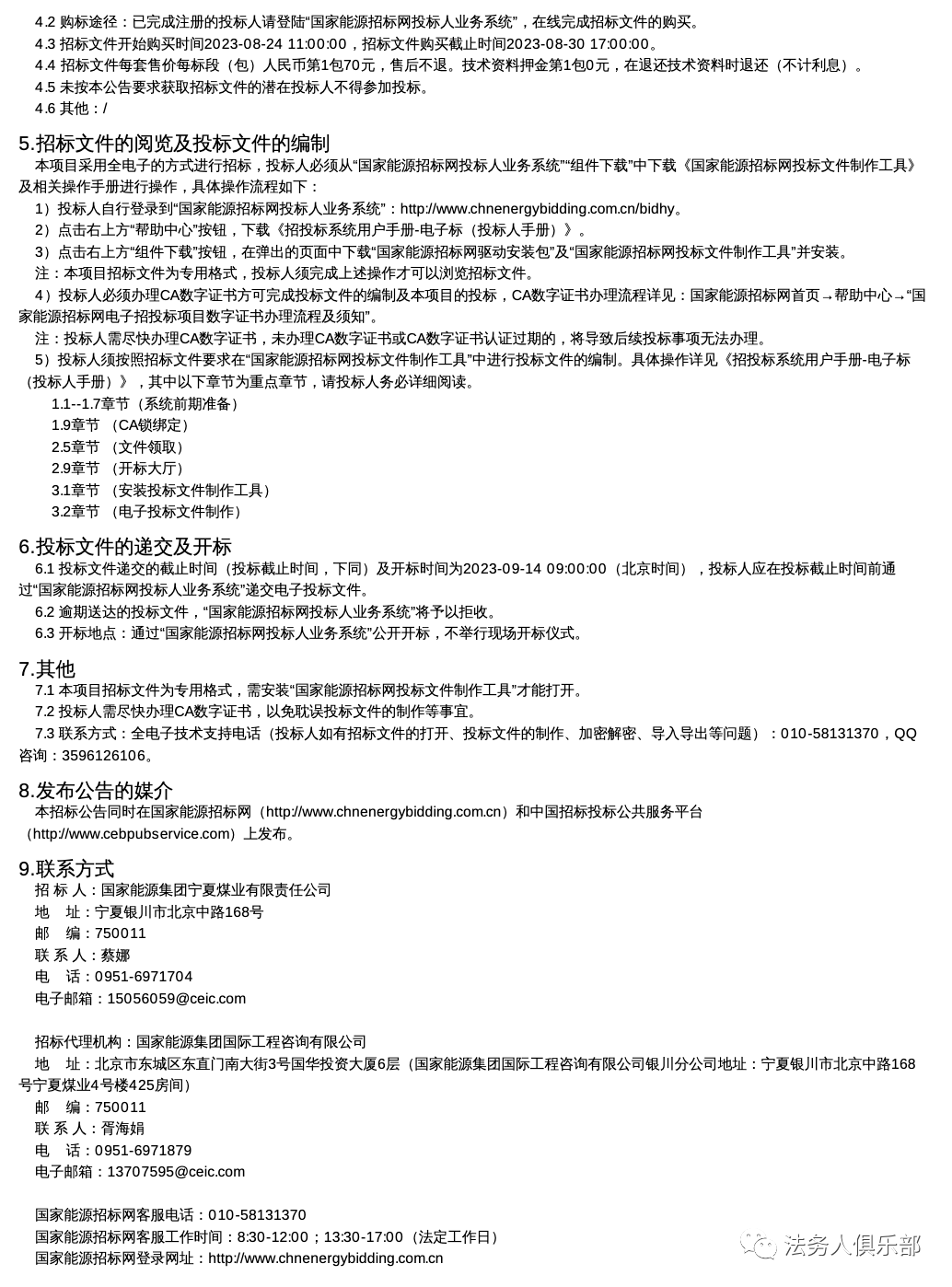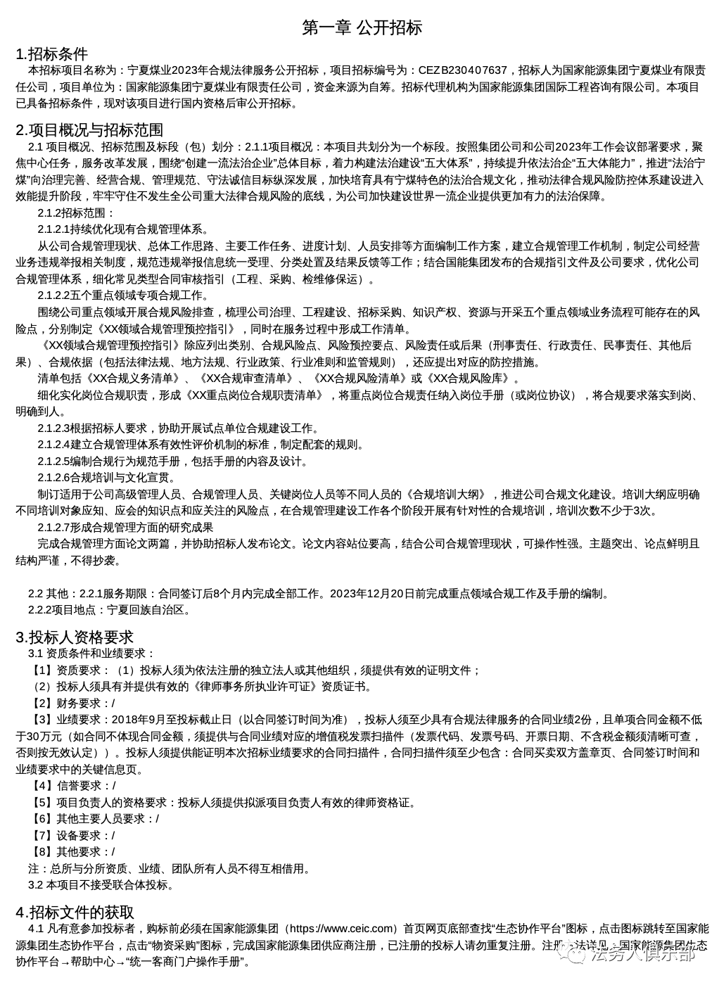 宁夏煤业2023年合规法律服务公开招标项目招标公告