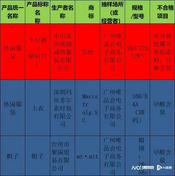 另外还有1款由中山市沙溪镇诚博服装有限公司所生产的“尔给”牛仔裤(B89117),存在“可分解致癌芳香胺染料”项目抽检不合格的现象。