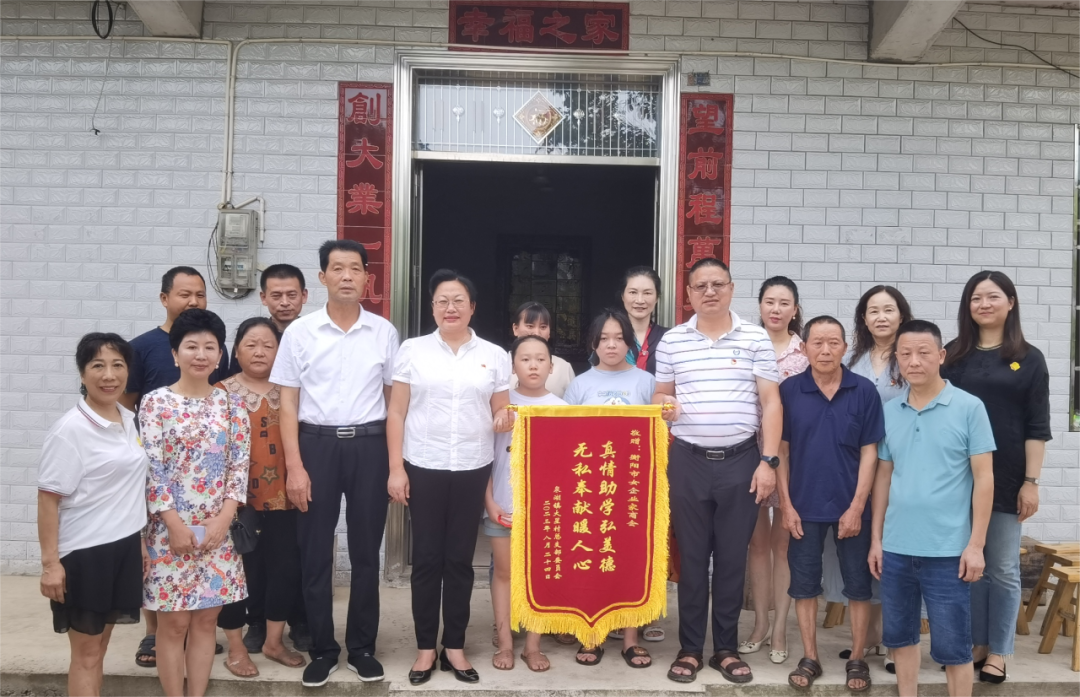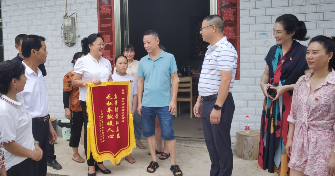 衡南县农业农村局驻村干部李起良、大星村村支部书记谭清和、原村支书尹文化参加了这次爱心捐助活动,并给市女企业家商会送上了“真情助学弘美德 无私奉献暖人心”的锦旗。