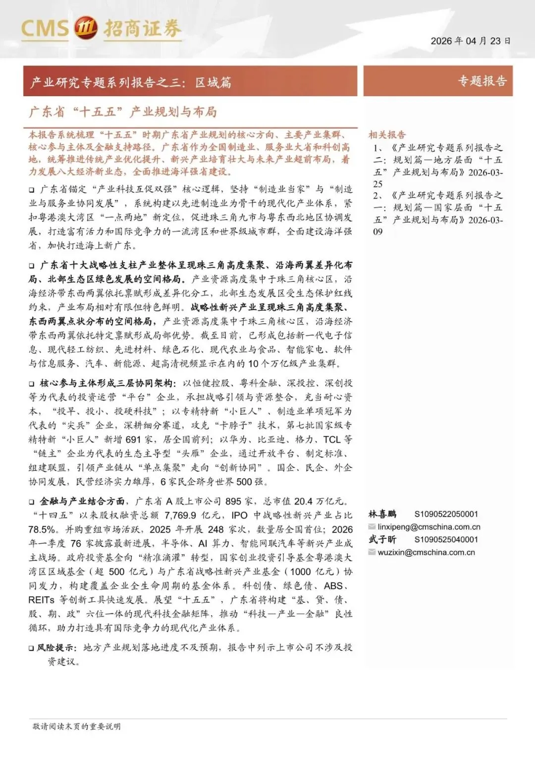 产业研究专题系列报告之三:区域篇,广东省“十五五”产业规划与布局-260423-招商证券-37页