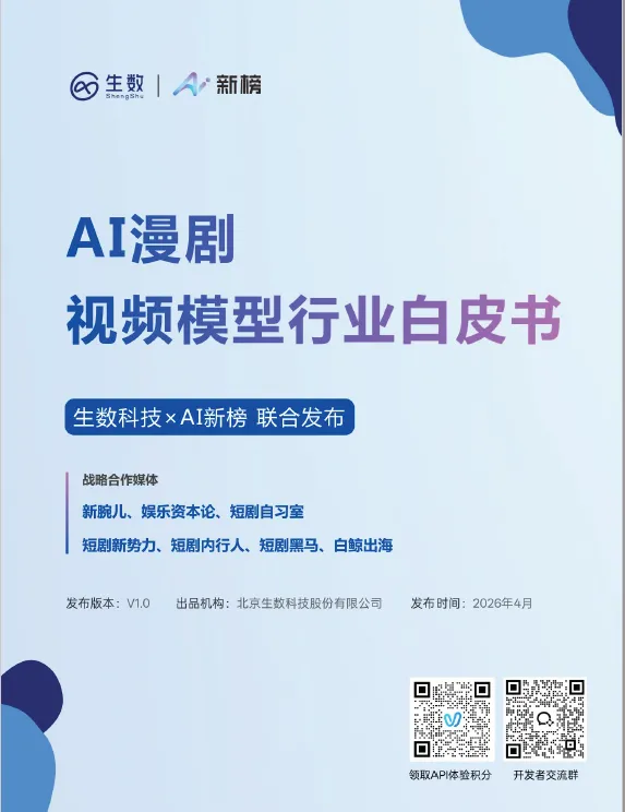 近日,生数科技与AI新榜联合发布了《2026年AI漫剧视频模型行业白皮书》,为我们揭开了这场风暴的核心——以“参考生视频”技术为引擎的工业化生产新范式。报告指出,AI漫剧行业正从野蛮生长迈入高质量发展的关键拐点,而谁能掌握这套新方法论,谁就能握住通往未来的船票。