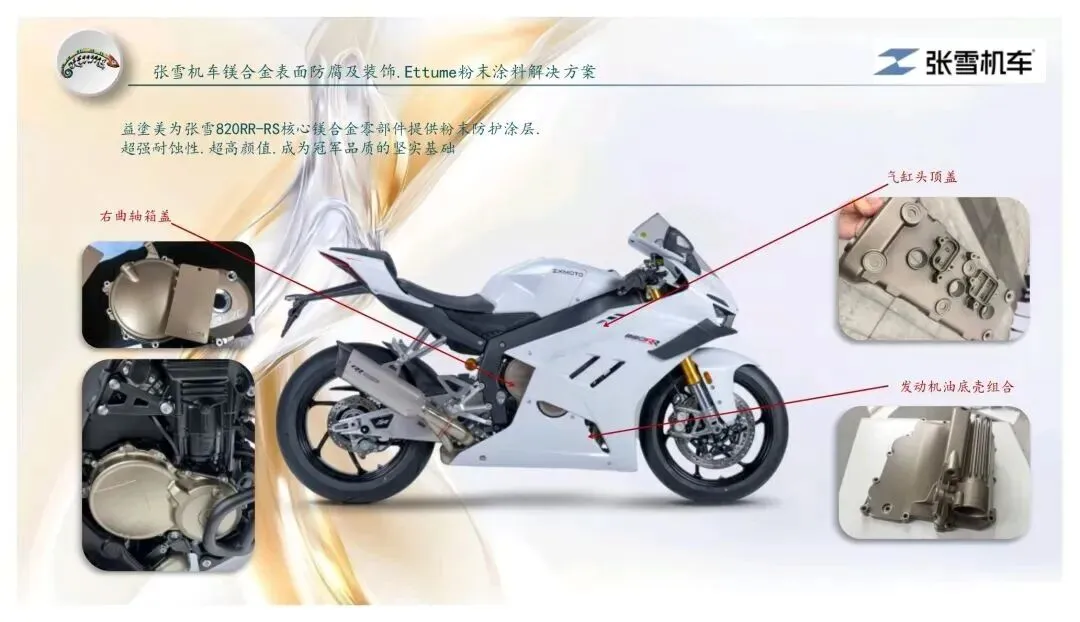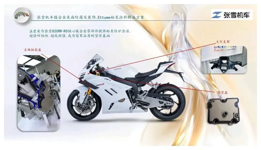 同时,益塗美积极参与中国涂料工业协会粉末涂料涂装分会的行业建设,参与标准制定、技术交流与质量规范,把镁合金涂装的实战经验反馈给行业,推动国产高端粉末涂料体系成熟。在标准与技术双重加持下,张雪机车的整车涂层系统更规范、更先进、更具竞争力。