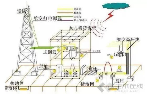 尤其在山丘地区,当接地电阻值要求较小而原地又难以达到时,若附近不远处有水源或者电阻系数低的土壤,则可利用该处制作接地极或敷设水下接地网。然后再利用接地线(如扁钢带)引接过来作为外引式接地。但应注意,外引接地装置要避开人行通道,以防跨步电压触电;穿过公路时,外引线的埋深应大于等于0.8米。