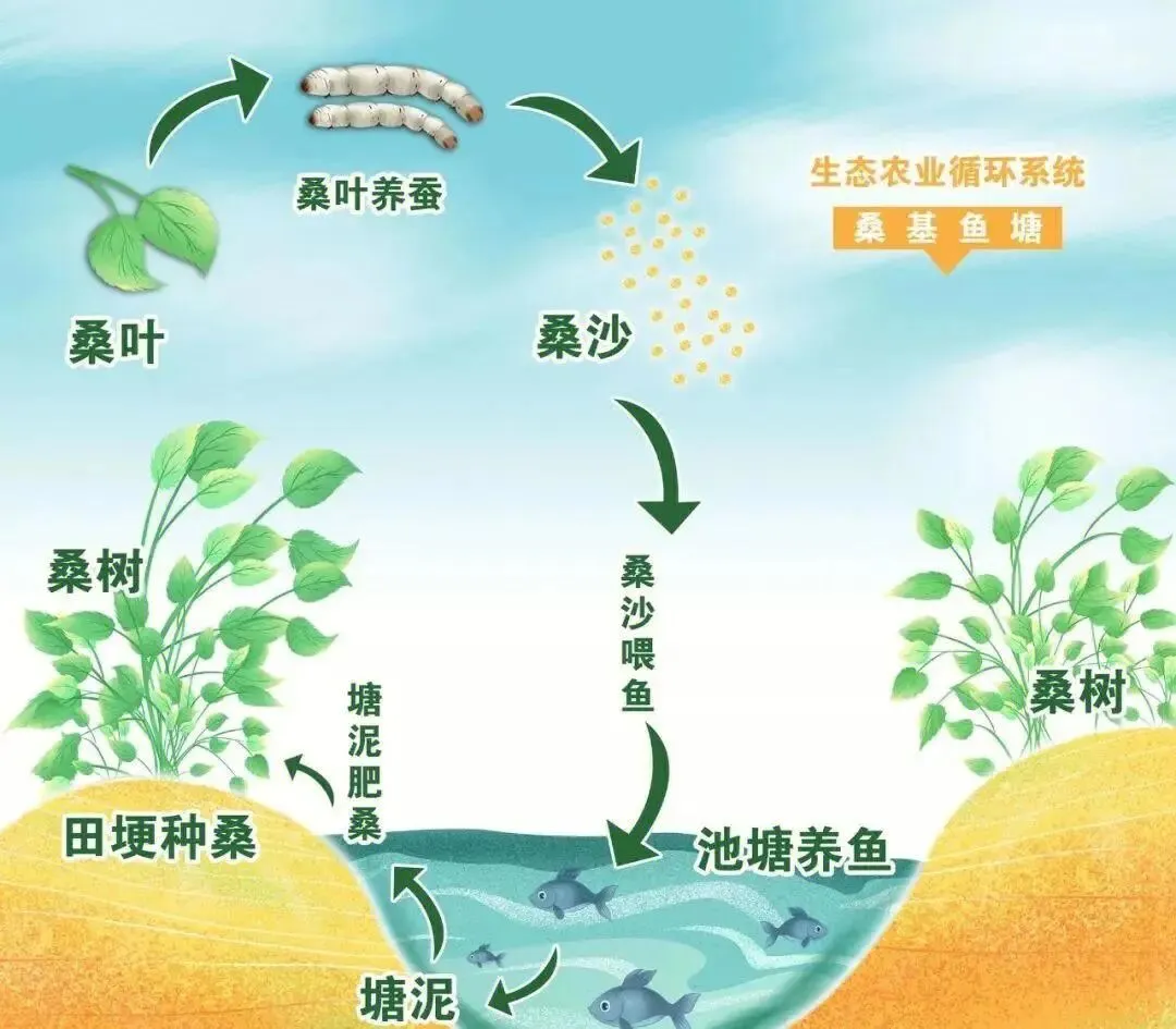 "蚕沙 — 有机肥 — 生物质发电" 产业链:蚕沙→有机肥→生物质能源,形成能源循环