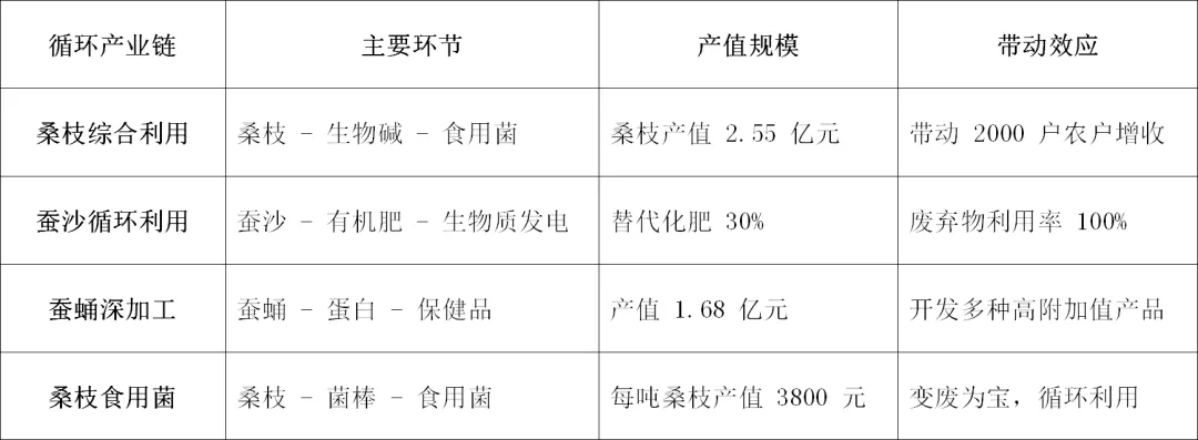 蚕桑资源综合利用是推动产业循环发展、提高资源利用效率的重要途径。各地借鉴工业 "副产品全利用" 理念,充分挖掘桑枝、蚕蛹、蚕沙等废弃物价值,形成了多条循环产业链。