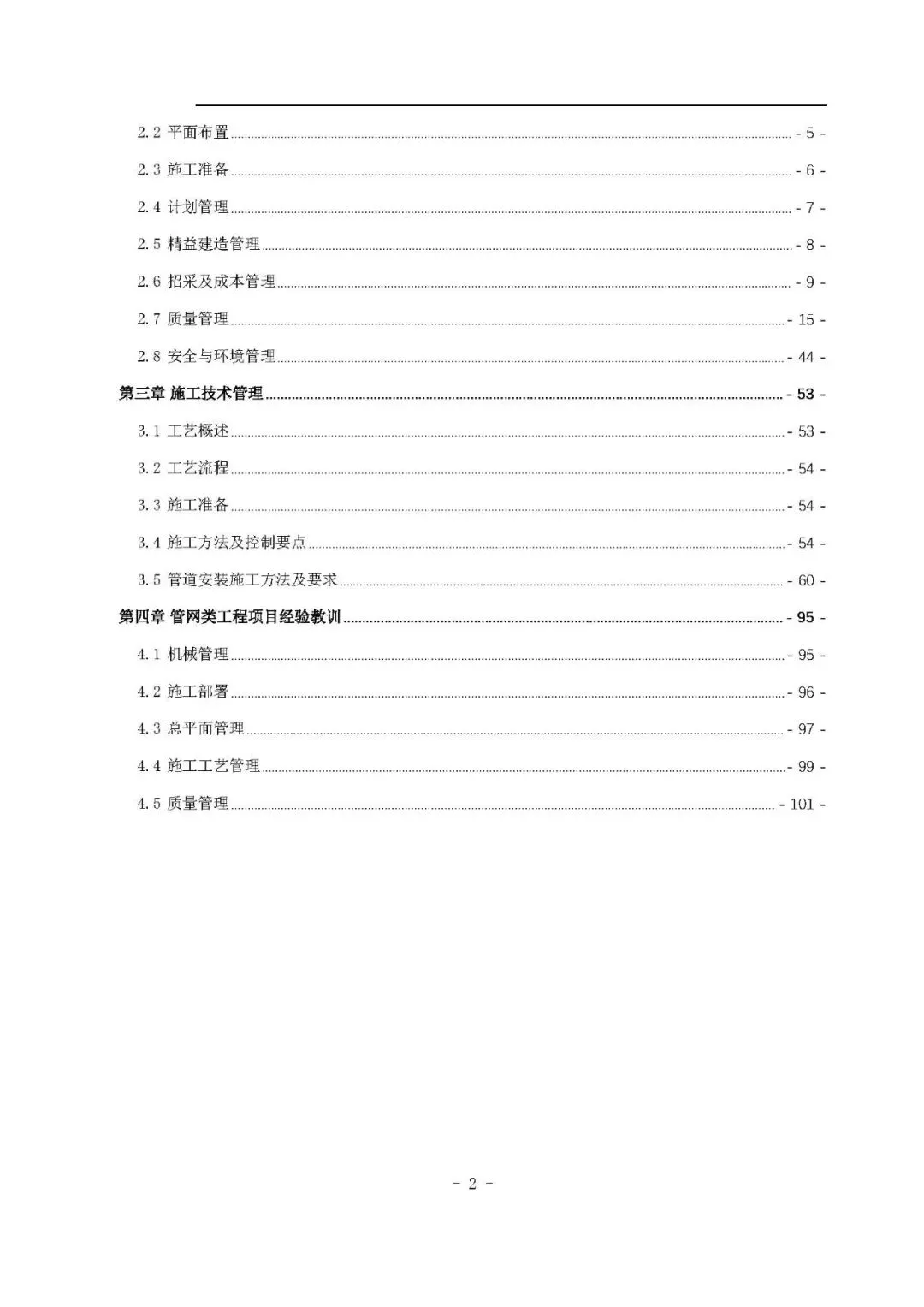手册深入到了管网项目的核心工艺。对于顶管施工,明确了工作井布置、顶进参数控制、测量纠偏、注浆减阻等关键环节的管理要求。对于明挖沟槽施工,重点强调了基坑支护、降水、监测及回填质量的控制。对于河道治理与水生态工程,则介绍了清淤、护岸、水生植物种植等工艺的注意事项。同时,手册对管道安装(球墨铸铁管、钢管、HDPE管等)的接口处理、压力试验、冲洗消毒也给出了标准流程,确保功能性质量。