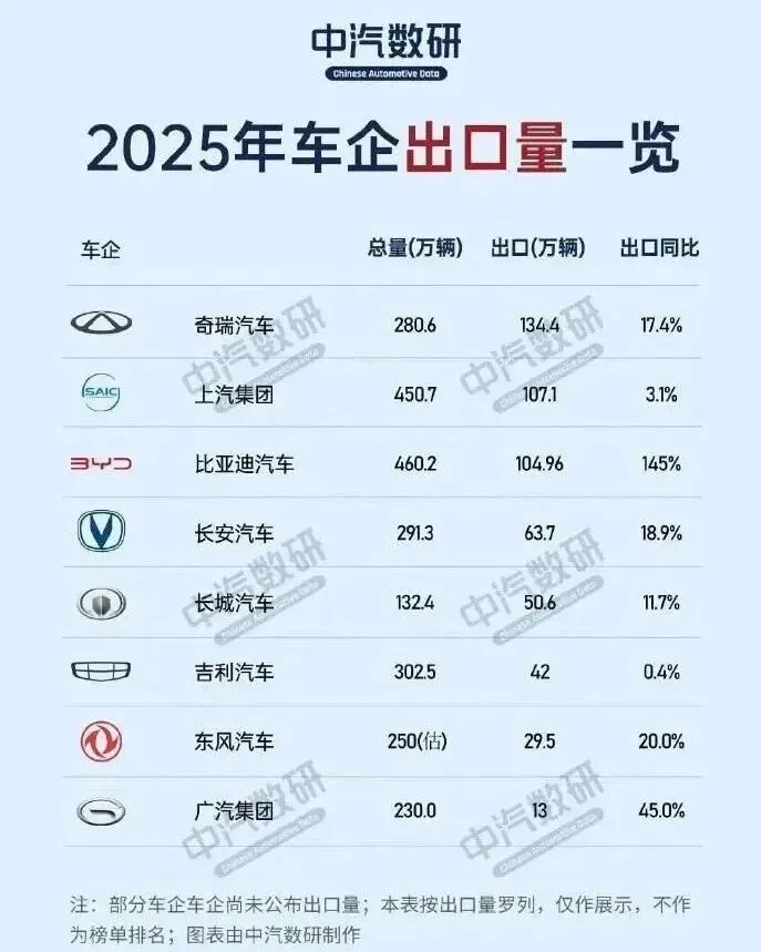 以3002.87亿元营收实现了195.07亿元利润,同比增长36.1%,是增速最快的一家。但拆解这份成绩单,出口占了相当大的权重——奇瑞连续多年位居中国品牌出口量第一,海外市场贡献了重要的利润来源。这意味着奇瑞的利润增长在相当程度上受益于海外市场的增量红利,而非国内市场的定价能力提升。