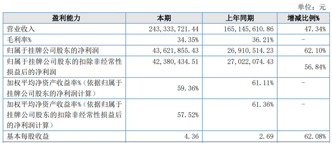 2025年度,营业收入2.43亿元,同比增长47.34%。归母净利润0.44亿元, 同比增长62.10%。详见如下数据: