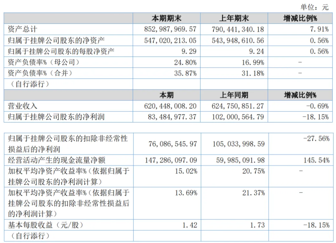 2025年度,营业收入6.20亿元,同比增长-0.69%。归母净利润0.83亿元, 同比增长-18.15%。详见如下数据: