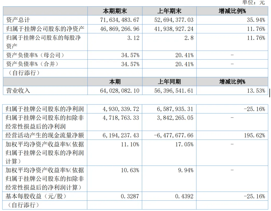 2025年度,营业收入0.64亿元,同比增长13.53%。归母净利润0.05亿元, 同比增长-25.16%。详见如下数据:
