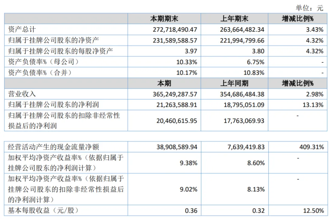 2025年度,营业收入3.65亿元,同比增长2.98%。归母净利润0.21亿元, 同比增长13.13%。详见如下数据: