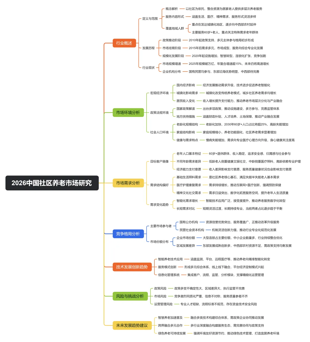 2026 年社区养老已进入万亿规模、高增长、强政策、硬需求阶段,老龄化与家庭结构变化是核心动力。行业呈公办兜底、民营创新格局,东部领先、城乡协同。当前仍存人才短缺、服务同质化等问题,但智慧化、跨界融合、绿色化将重塑行业,社区养老是养老产业最具确定性的赛道。
