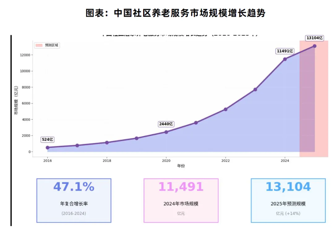 3. 规模化发展阶段(2020 年至今) 全国社区养老设施数量大幅增加,服务标准完善,智慧养老全面普及,资本密集入场,连锁化运营成主流,市场规模正式突破万亿大关。