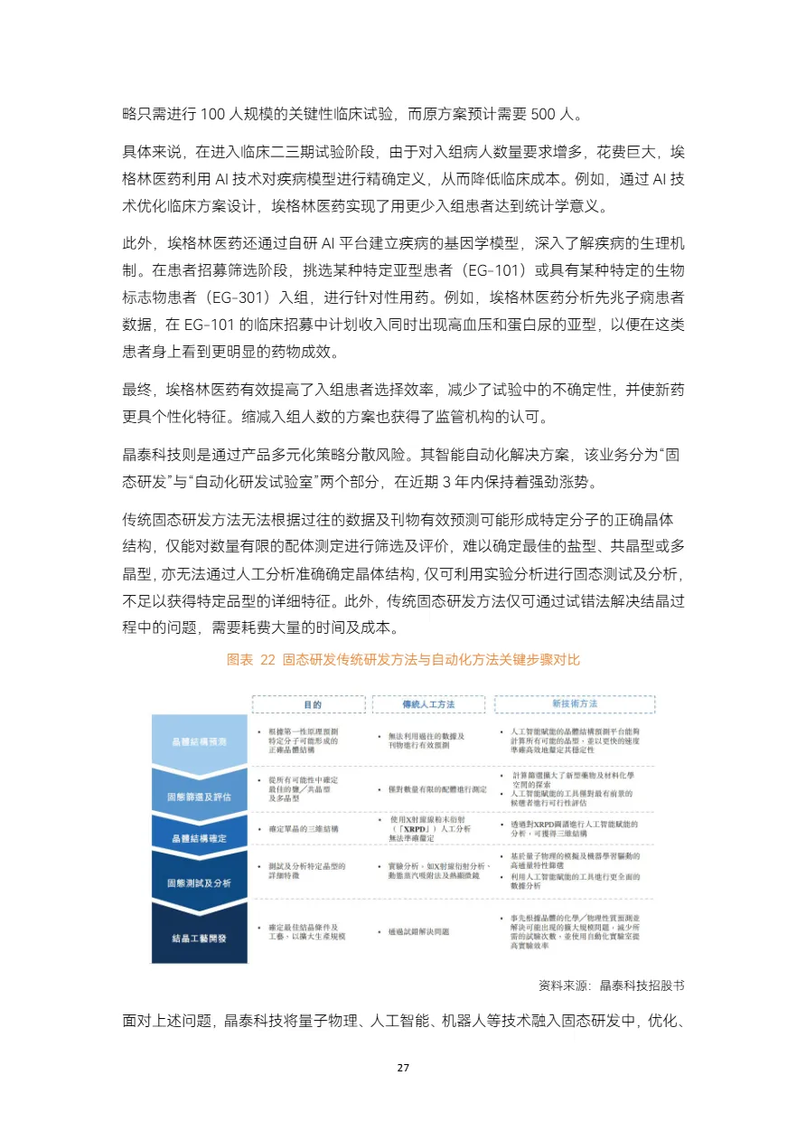 • AI制药商业化路径分化,License-out成破局关键:英矽智能通过ISM3091、ISM5043两项对外授权斩获超15亿美元订单,验证“AI+Biotech”模式的变现能力;晶泰科技借道港交所18C章成为“AI制药第一股”,为未盈利企业开辟上市新路径。