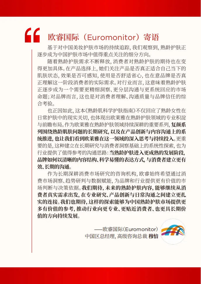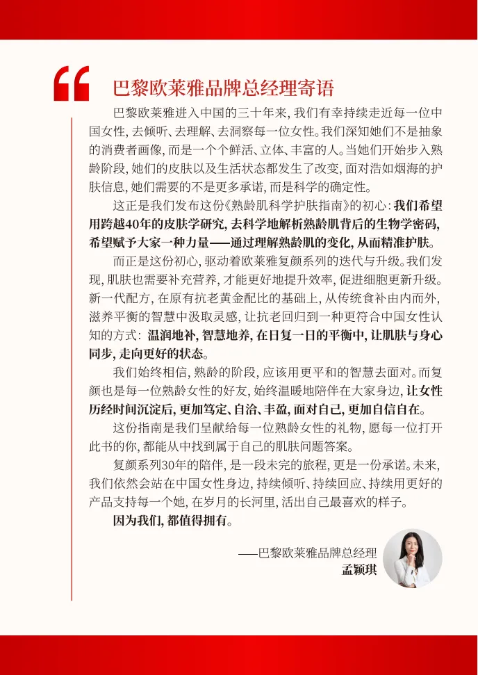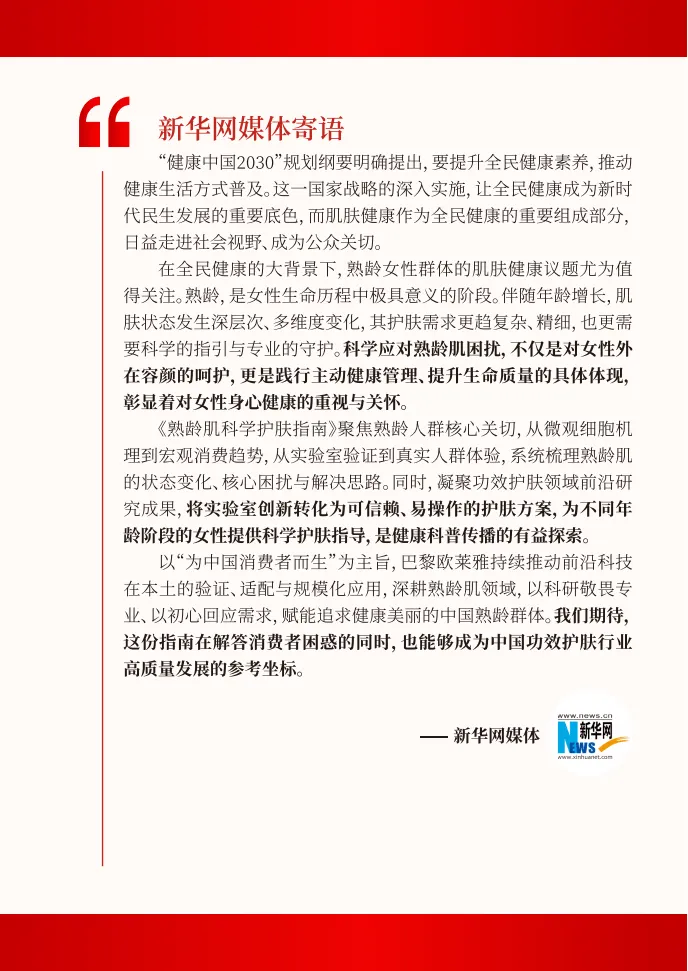 这份由巴黎欧莱雅联合新华网、欧睿国际推出的《熟龄肌科学护肤指南》,立足30年熟龄肌护肤研究与百万中国女性消费洞察,系统拆解熟龄肌成因、核心困扰与科学护理方案,为熟龄群体提供了可落地、可验证的抗老护肤思路。
