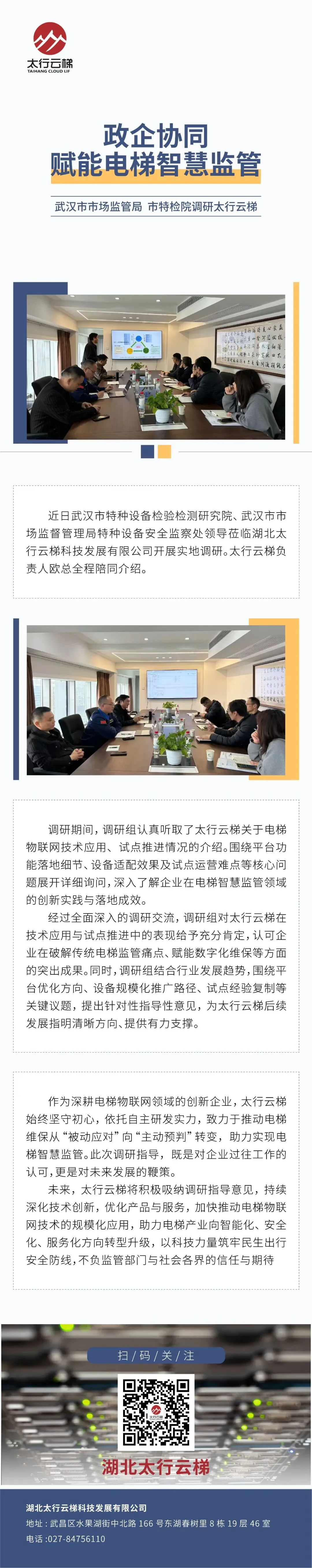 政企协同赋能电梯智慧监管|武汉市市场监管局 市特检院调研太行云梯