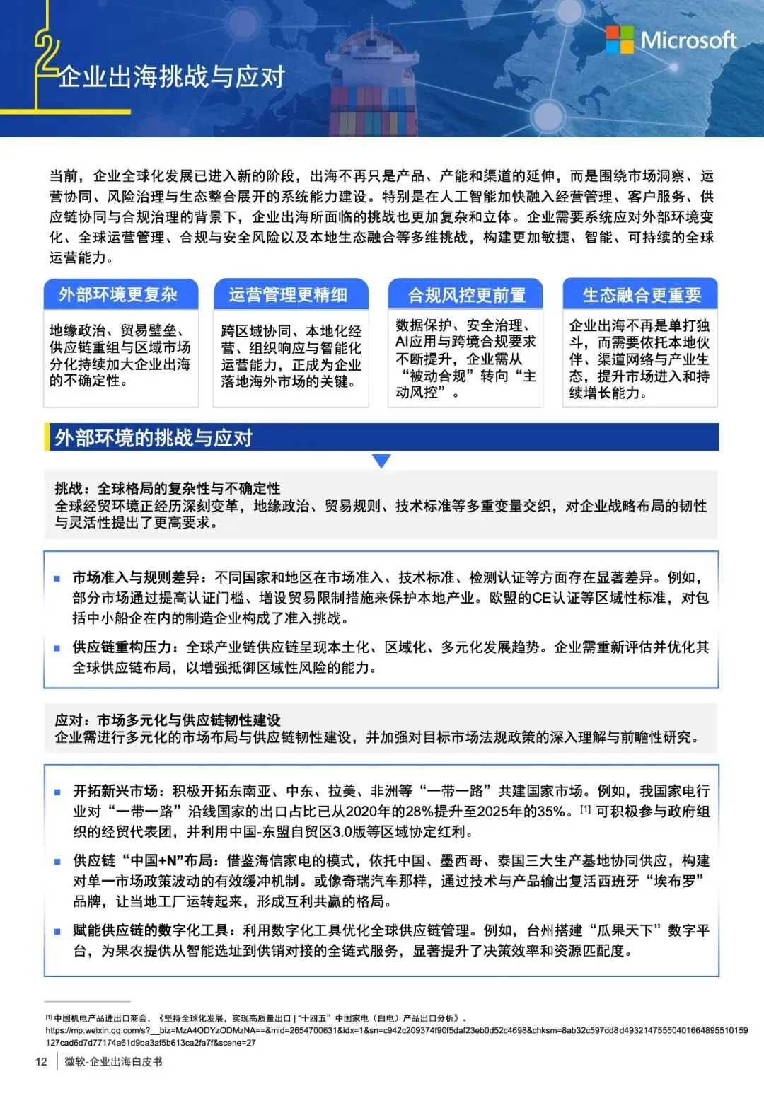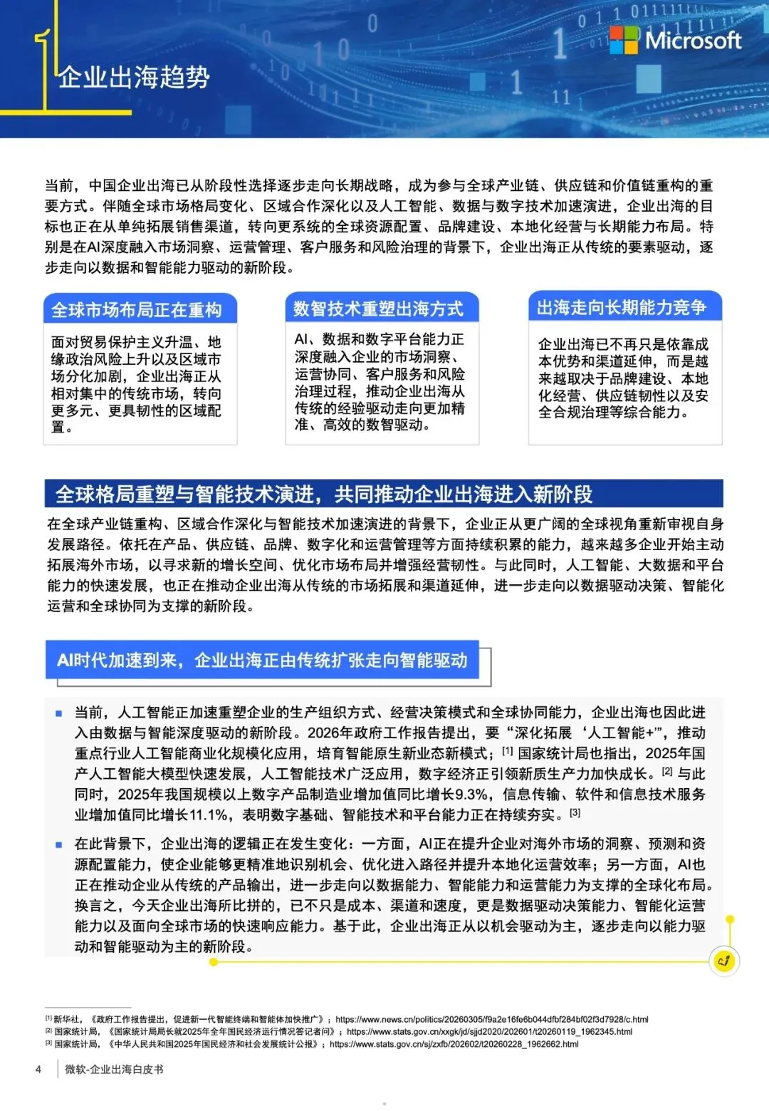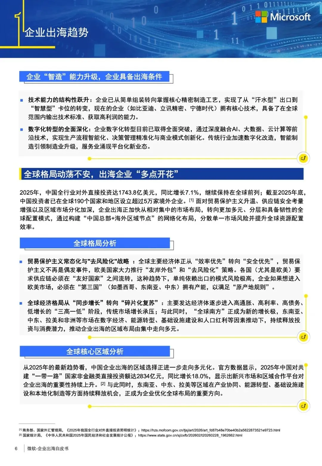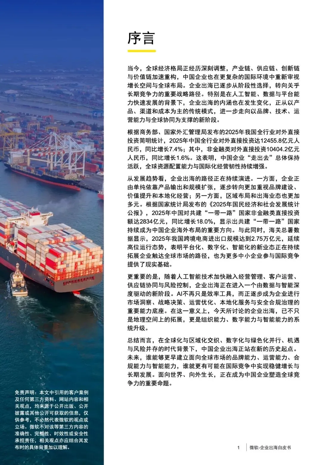 AI正将中国企业出海从“低价铺货”推向“智能共生”的新范式,胜负手已转向全球化的系统能力。数据显示,2025年中国对外非金融类直接投资达1.04万亿元,其中对“一带一路”国家增长18%。过去靠性价比“卖全球”的模式,正被地缘政治与内需放缓倒逼升级。真正的转变在于:AI不再只是降本工具,而是嵌入战略、合规与本地运营的“数字神经”。从OPPO借Azure AI实现多语言转录,到联想用Copilot打破时区协同,成功者已告别机会主义,转向数据驱动的“战略深耕”。换言之,谁能用智能能力解决“融入难”,谁才能在全球碎片化市场中拿走高利润。