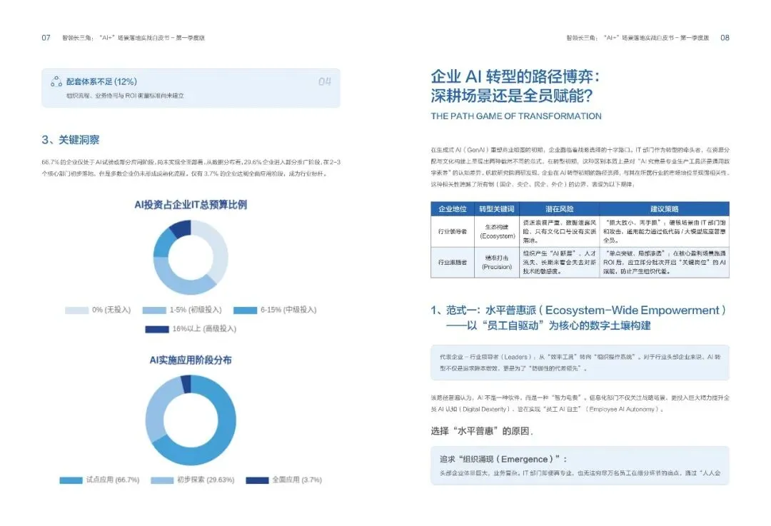 在生成式AI(GenA)重塑商业版图的初期,企业面临着战略选择的十字路口。T部门作为转型的牵头者,在资源分配与文化构建上呈现出两种截然不网的范式。在转型初期,这种区别本质上是对“AI究竞是专业生产工具还是通用数字素养”的认知差异。公号后台回复“9”,在AI大模型·领地知识星球查看~......