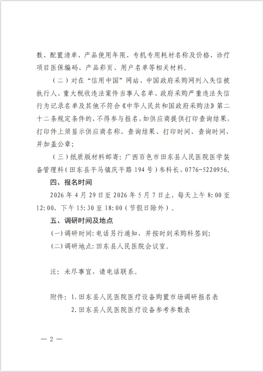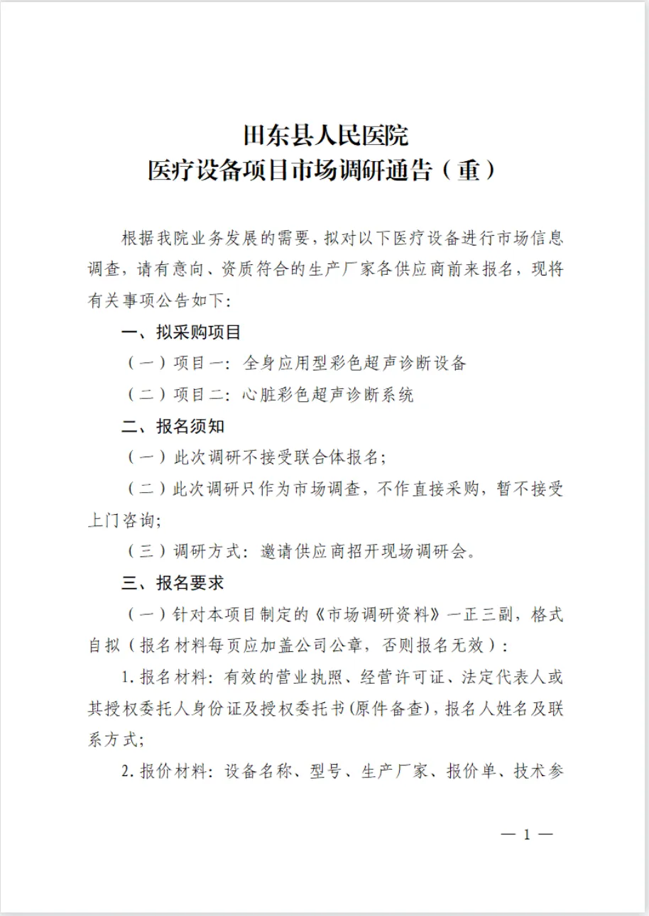 田东县人民医院医疗设备项目市场调研通告(重)